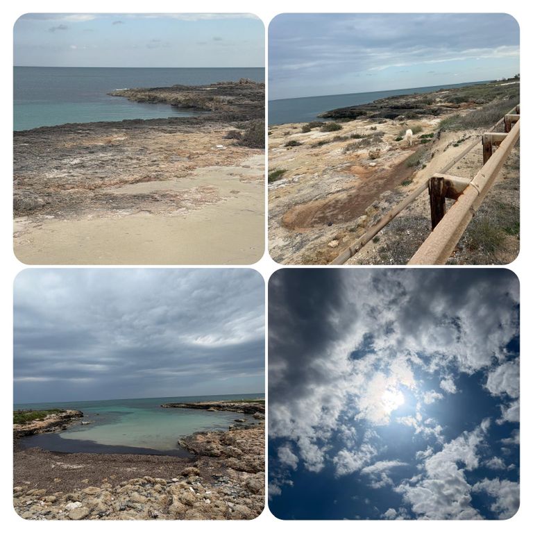 Auf dem Weg dorthin hatte ich gleich nach dem Start einen Irrweg Vormittag, eine Baustelle verhinderte den ursprünglich geplanten Weg, mit ein paarmal vor und zurück habe ich dann doch einen Weg gefunden und wurde mit wunderschönen Buchten entlang des Weges belohnt. So unglaublich schöne Terrassenfelsen und türkisblaues Wasser mit teilweise Sandstrand unfassbar schön. Eine Zeitlang ging ich dann auch fernab des geplanten Weges entlang des Strandes - wunderschön.