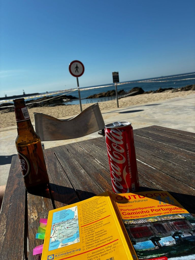 Mit unserer kleinen Stärkung ging es weiter am Meer entlang bis zu einem kleinen Café. Dort hat Kathy ein herrenloses Handy auf einer Steinmauer gefunden, sie zögerte nicht lang und nahm es an sich, als Hintergrundbild war eine Familie zu sehen. Wir wollten es im Café abgeben, doch dann klingelt es und Kathy hob ab. Es war der Mann, dessen Frau ihr Handy verloren hatte. Er war sehr dankbar und kam zu uns ins Café, wo wir es dann übergeben haben, während wir Bier und Cola tranken, mit Aussicht aufs Meer.🌊