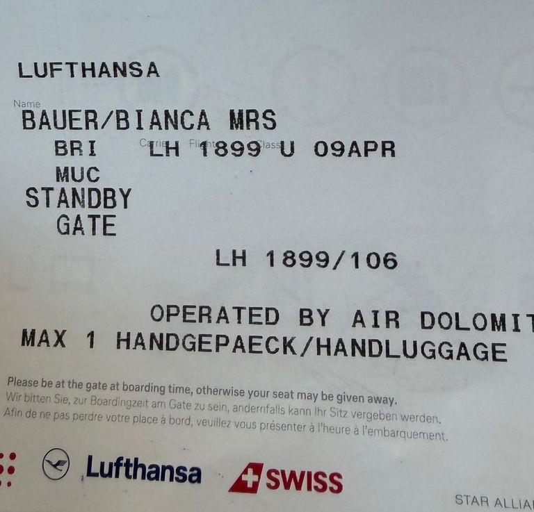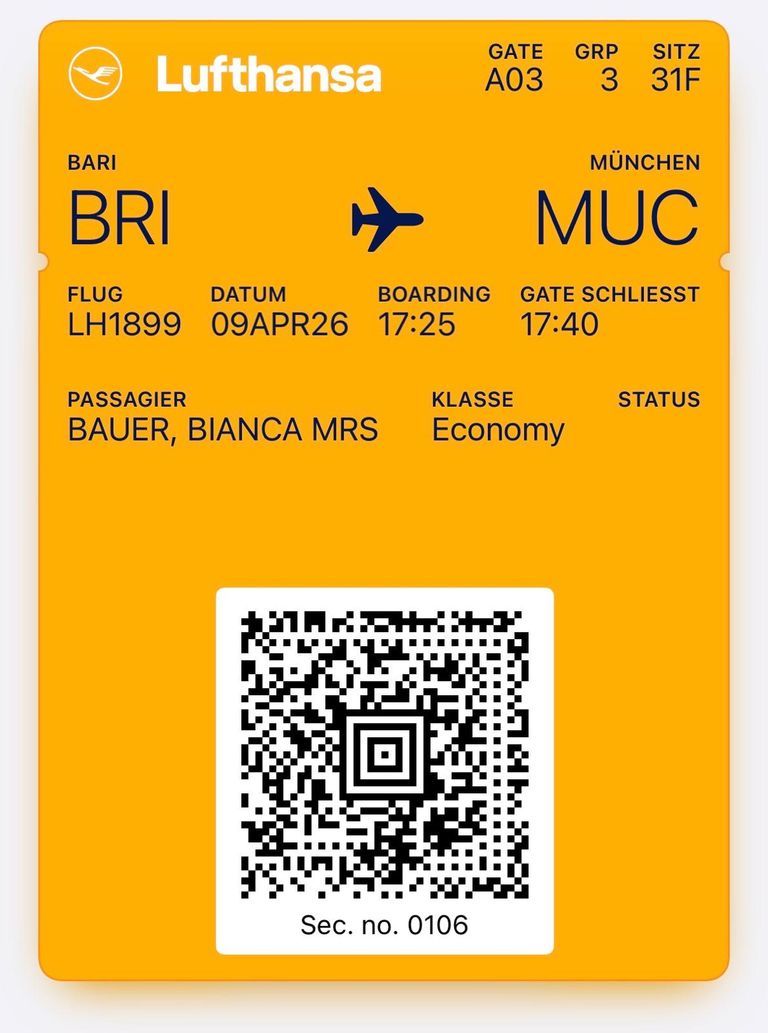 Als ich diese öffnete war es plötzlich ein Flug der Swiss Air für liegen von Brindisi über Zürich nach München. Toll!