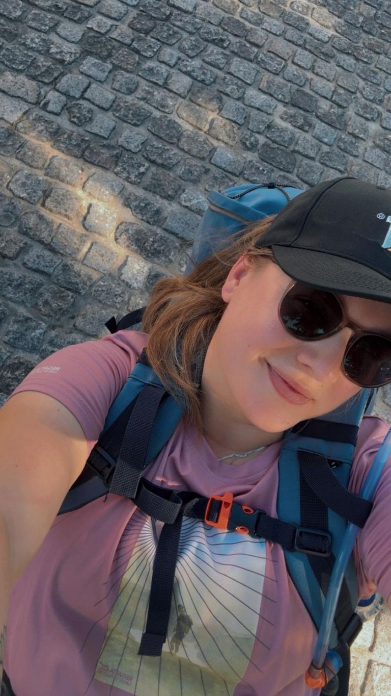 Während wir völlig verschwitzt und rot von der Sonne, mit müden Beinen den Berg hochliefen, überholte uns ein weiterer netter Pilgerer in super schnellen Schritten und wenig verschwitzt. Als sei es das Normalste den Weg so easy zu laufen. Da waren wir etwas neidisch 🥲😂.