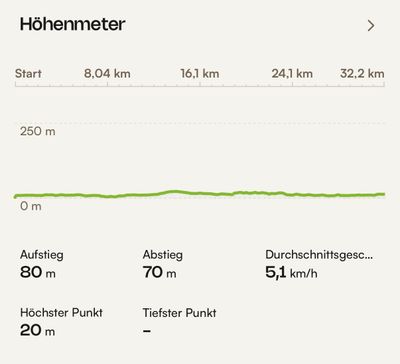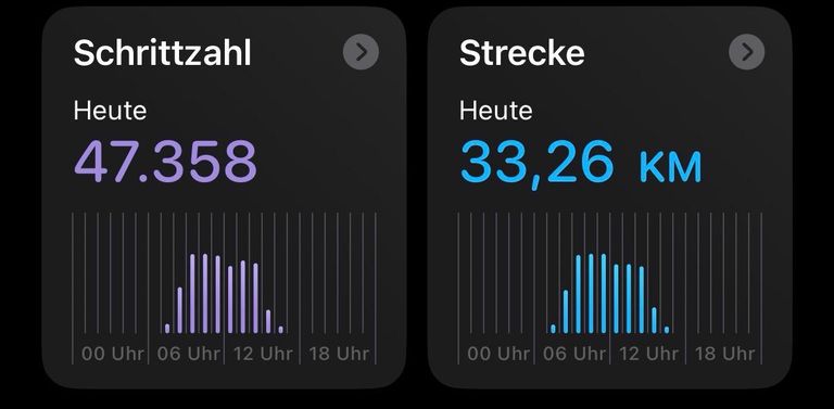 Wir haben heute insgesamt 33,26 km zurückgelegt, davon 80 Höhenmeter bergauf und 70 Höhenmeter bergab. Hierfür brauchte ich insgesamt 47.358 Schritte.