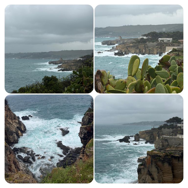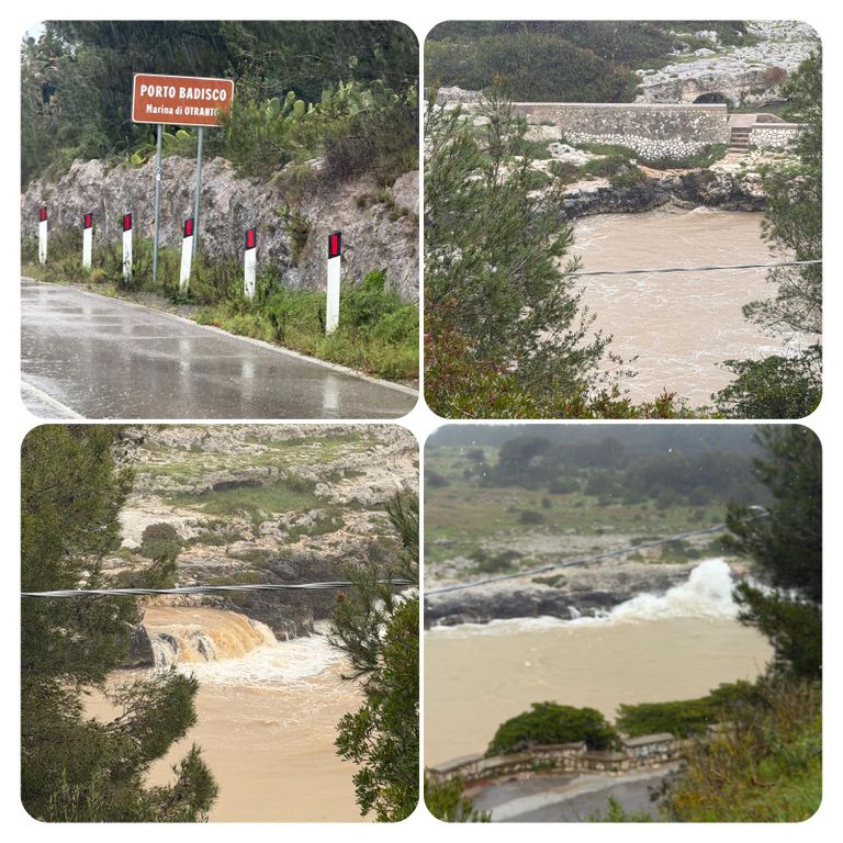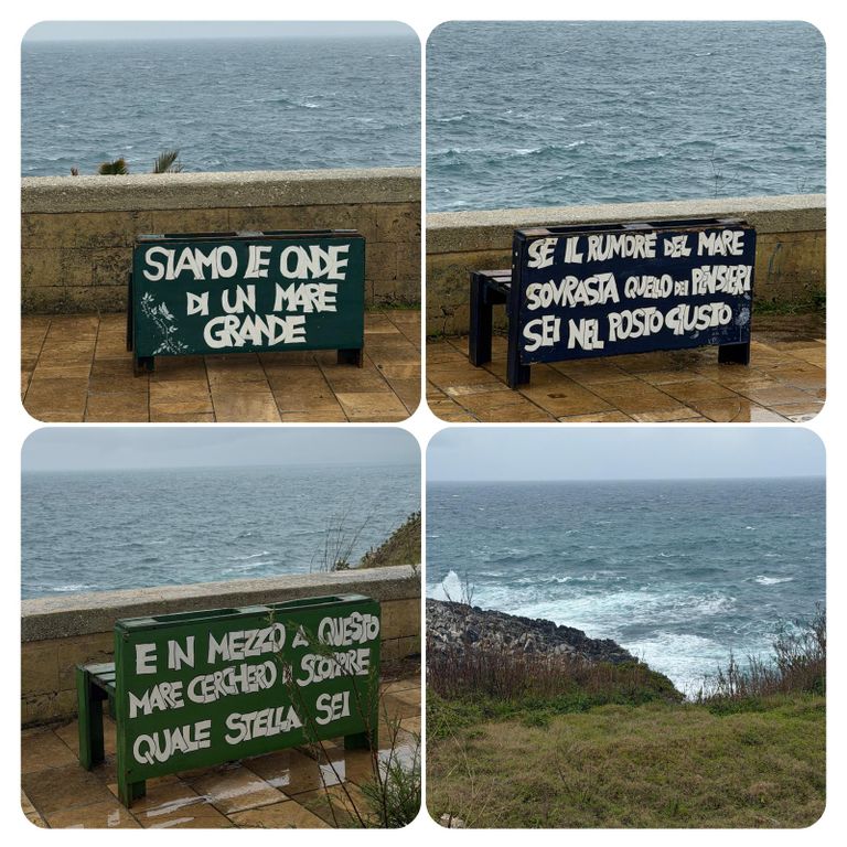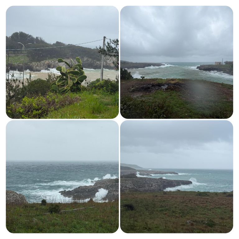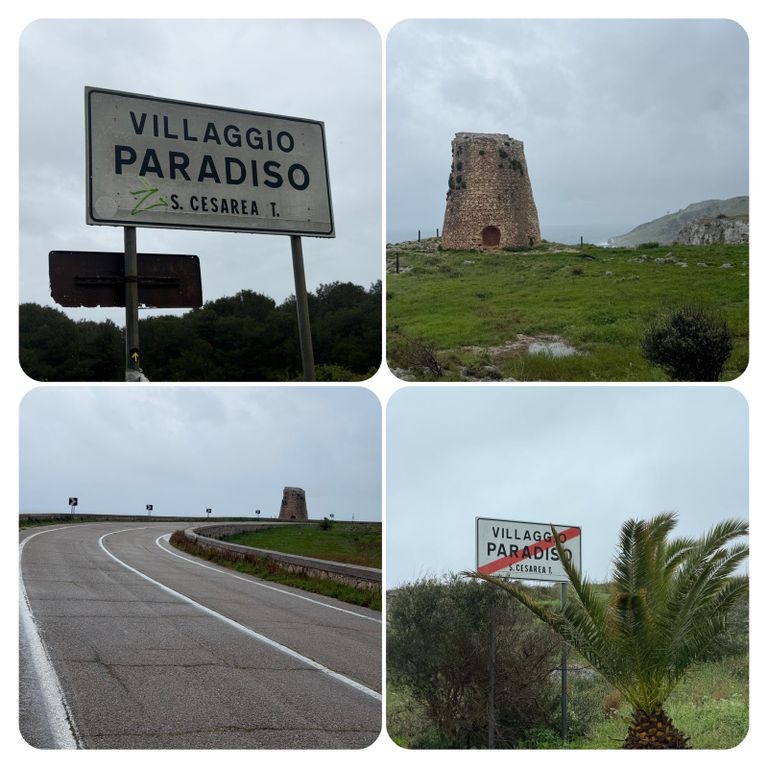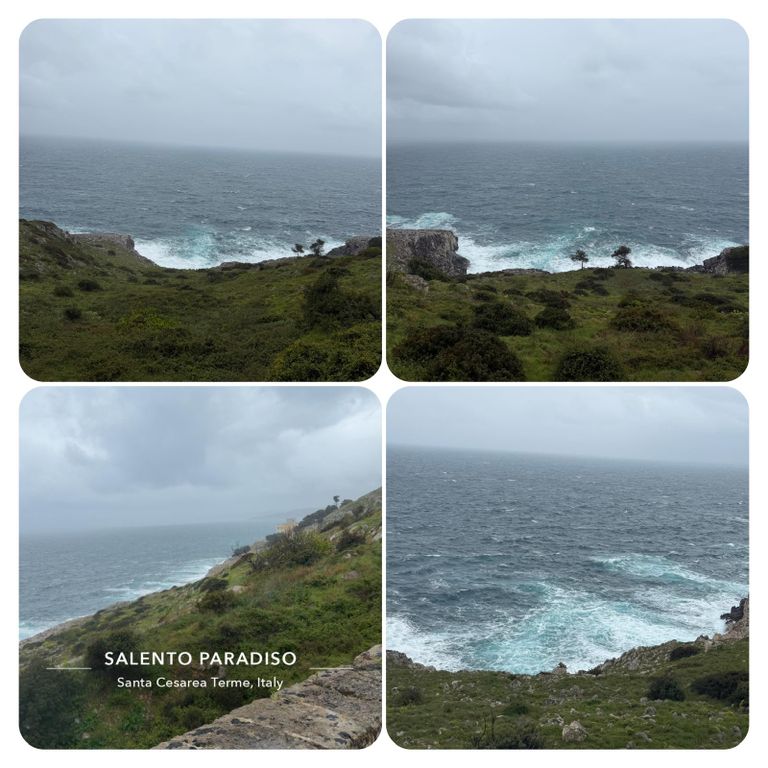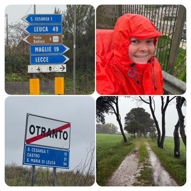 Zuerst führte mich mein Weg an der Straße entlang den Berg hinauf, als ich die Stadt verlassen hatte ging’s weiter auf dem Wanderweg PUGLIA. Hier waren die Wege zeitweise erneut Flüsse, riesige Pfützen oder gleich Seen. Ich versuchte diese irgendwie zu umgehen, doch nach kurzer Zeit war es völlig egal, das Wasser lief von oben in meine Schuhe und der Pegel war dementsprechend schnell höher als der der Loisach. So musste ich nicht mehr auf die tiefen Pfützen achten, da es es keinen Unterschied mehr machte. Jetzt galt es nur noch aufpasse, da es entsprechend matschig und rutschig war. Irgendwann kam ich dann zurück auf die Straße und diese wollte ich auch nicht mehr verlassen, auch wenn mein Navi mich permanent auf diese komischen Wanderwege oder besser Wanderflüsse zurückführen wollte. Die Straße war eine Küstenstraße mit wunderschöner Aussicht. Trotz des Regens ist die Gegend einfach atemberaubend schön .