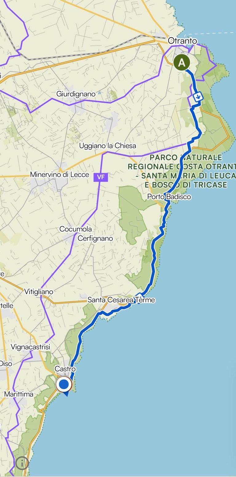 Von Torre dell Òrso gehts heute entlang der Faraglioni de' la Castddhruzzastartet bis nach Foce dei Laghi Alimini entlang des Alimini Grande und des Alimini Piccolo nach Porto di Otranto bis nach Porto Badisco.