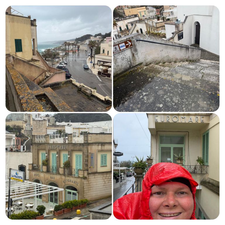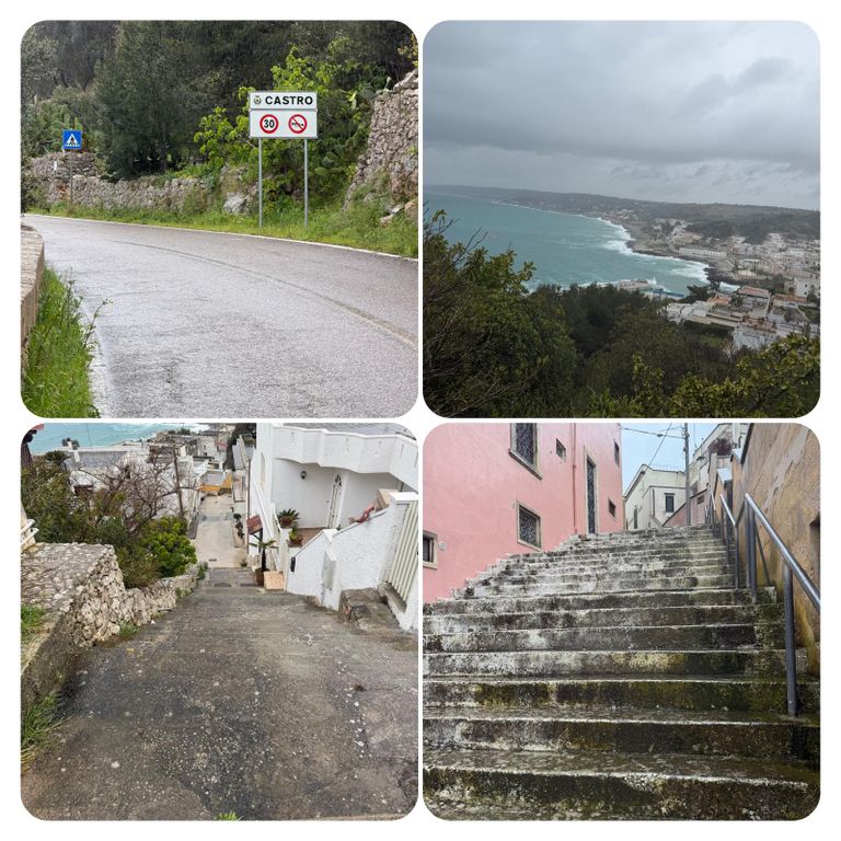 Um die nächste Kurve und da war es, das heutige Ziel „Castro“, die Stadt lag unter mir und ich musste nun noch irgendwie da runter. Um die nächste Kurve war klar, dass es nur mit Treppen gehen wird, also stieg ich gefühlt tausend Stufen hinab, zum Glück gab es zeitweise Handläufe, die Stufen waren ganz schön rutschig. Von weitem sah ich schon mein gebuchtes Hotel, dieses sah aber zu und eher verlassen aus, mal sehen was mich da erwartet.