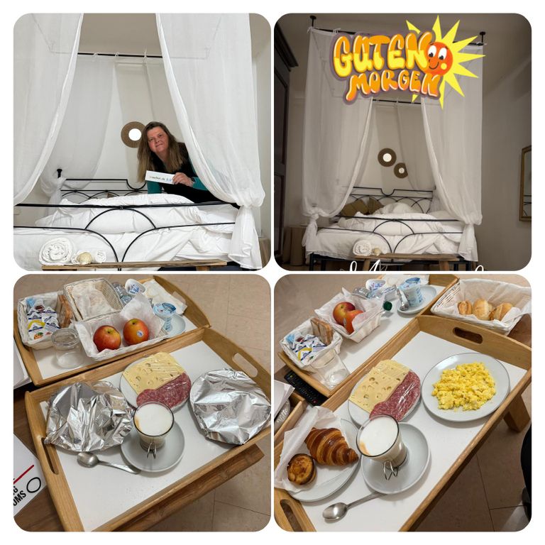 So machte ich mich fertig und packte meine Sachen während ich auf mein Frühstück wartete. Ich kochte mir schonmal eine Tasse Kaffee , den gab es hier im Zimmer nämlich und gegen viertel nach acht kam mein Frühstück, ich staunte nicht schlecht, es hatte alles zu bieten was man sich vorstellen kann, von Rührei bis Käse, Salami, Frischkäse, Butter, Marmelade und und und….. Cappuccino gab es auch noch dazu.