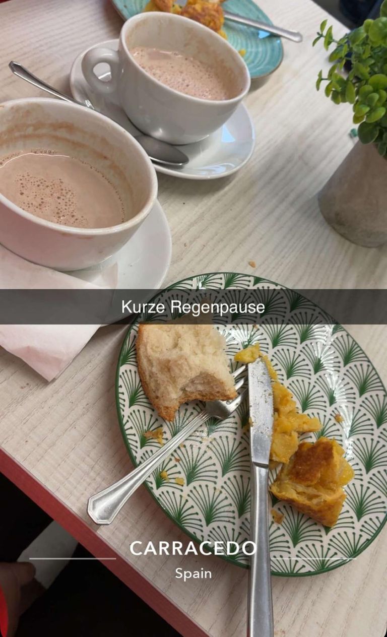 Im Hotel angekommen (um 13:40 Uhr! 😳💪🏻), machten wir uns direkt wieder auf um ein paar Snacks und isotonische Getränke zu besorgen. Mit denen haben wir den Nachmittag dann frisch geduscht und eingekuschelt im Bettchen ausklingen lassen und die Beinchen geschont für die letzte Etappe nach Santiago de Compostela!