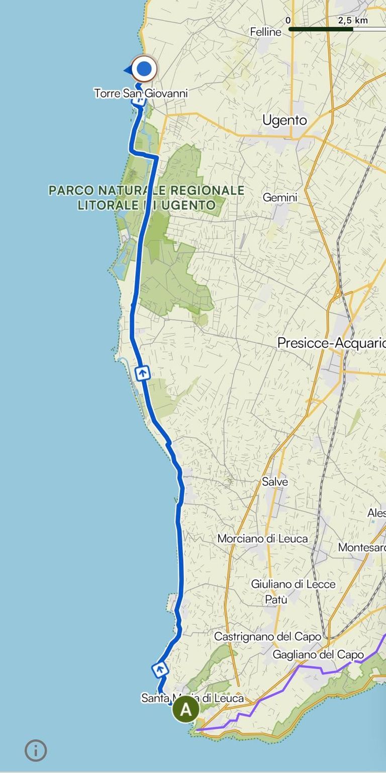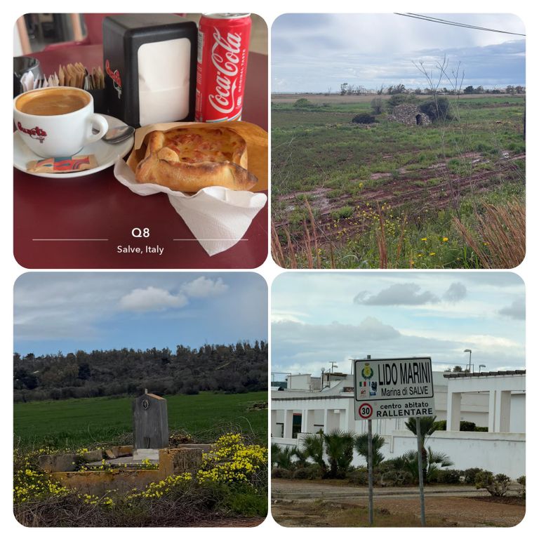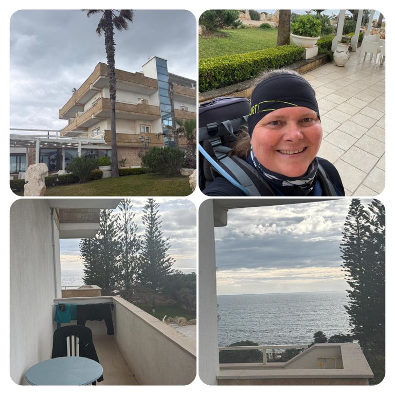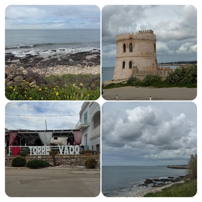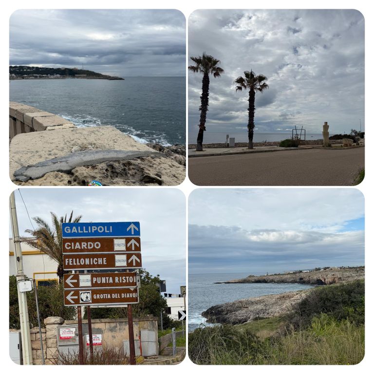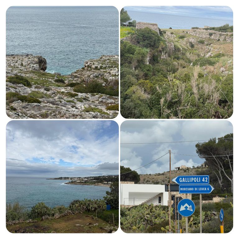 Los ging es dann bei ein wenig Sonnenschein und Wolken im mix ️ gegen kurz vor neun. Heute hatte ich noch eine Mission zu erfüllen, Katja hatte mir einen Wanderstein mitgegeben, den ich irgendwo in Italien liegen lassen sollte, dieses Irgendwo habe ich mir für den südlichsten Punkt des Absatzes aufgehoben und so habe ich heute den Wanderstein an einem schönen Ort abgelegt. Weiter ging es mit durchwachsenem Wetter immer an der Straße entlang. Auf die Wanderwege verzichtete ich zunächst noch da hier die Pfützen doch noch etwas tief sind.