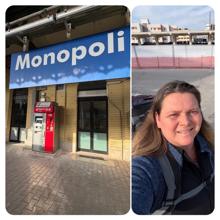 Der Zug für pünktlich los ich kam an einigen bekannten Orten vorbei, die wir bereits bewandert habe und schwelgte in Erinnerungen. Letztendlich hatte auch dieser Zug zum Ende fast eine halbe Stunde Verspätung als ich endlich nach Vier in Monopoli angekommen bin.
