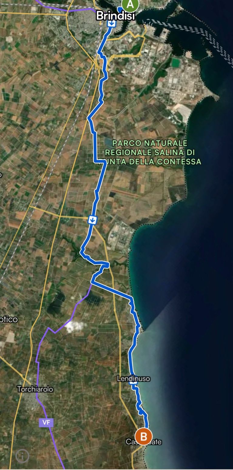 Danach geht es vorbei am Parco Naturale regionale Salina di Punta della Contessa bis wir das Riserva Naturale regionale Orientata Bosco die Cerano durchqueren werden.